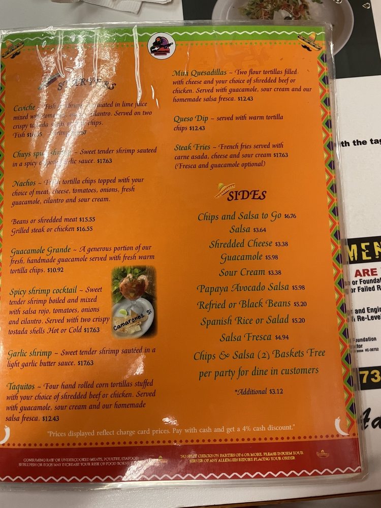 El Mariachi Menu